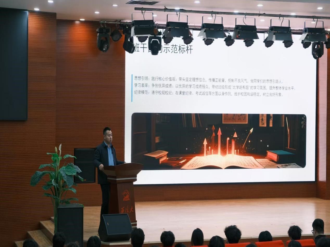 会议伊始,杨志发院长对全体班干部长期以来在班级建设、同学服务及学院学生管理工作中付出的努力与取得的成效表示衷心感谢。他指出,班干部作为连接学院与广大同学的重要桥梁纽带,是学生工作队伍的核心力量,肩负着服务同学、管理班级、引领成长的重要使命,其履职成效直接关系班风学风建设与学院学生工作整体推进,希望全体班干部珍惜信任、扛起责任,充分发挥先锋模范作用。